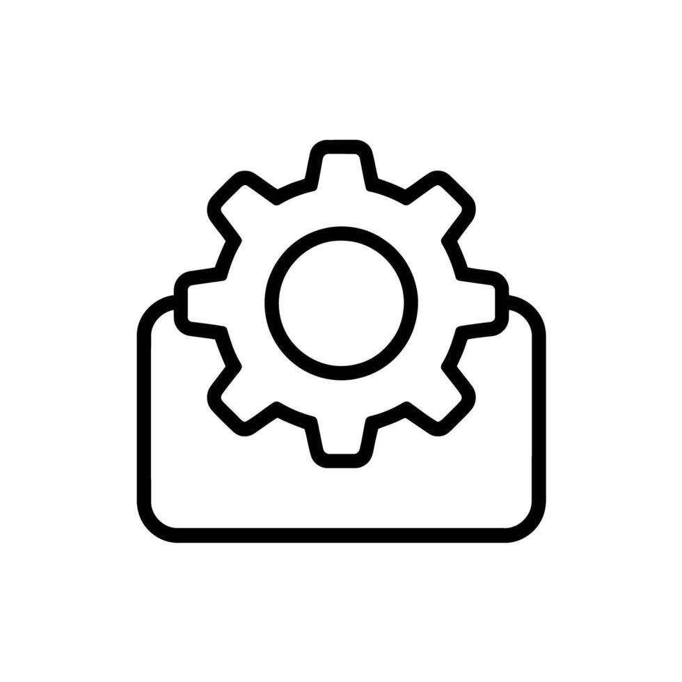 Black line icon of gear with rectangle showing mechanism process concept design vector
