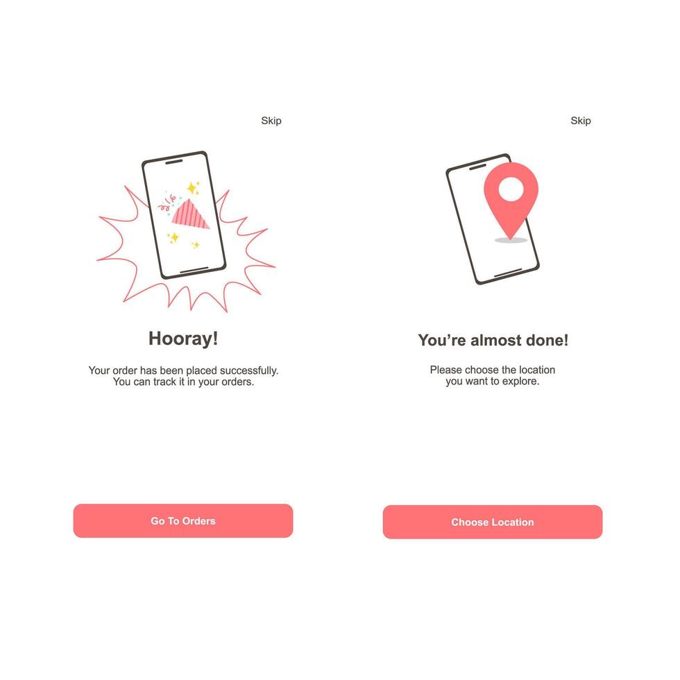 Mobile App UI with Order Confirmation and Location Selection Screens for Delivery Pro Vector