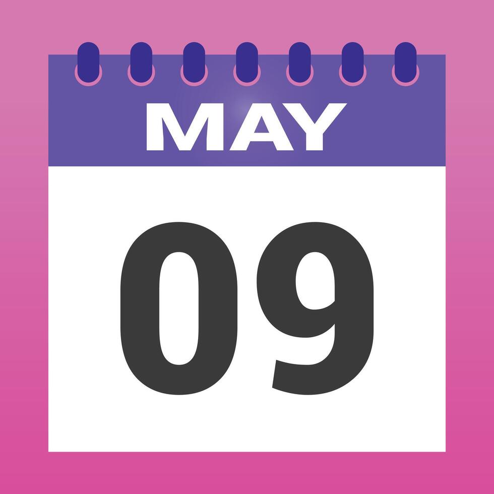 May ninth is displayed clearly on a calendar with a gradient background Pro Vector