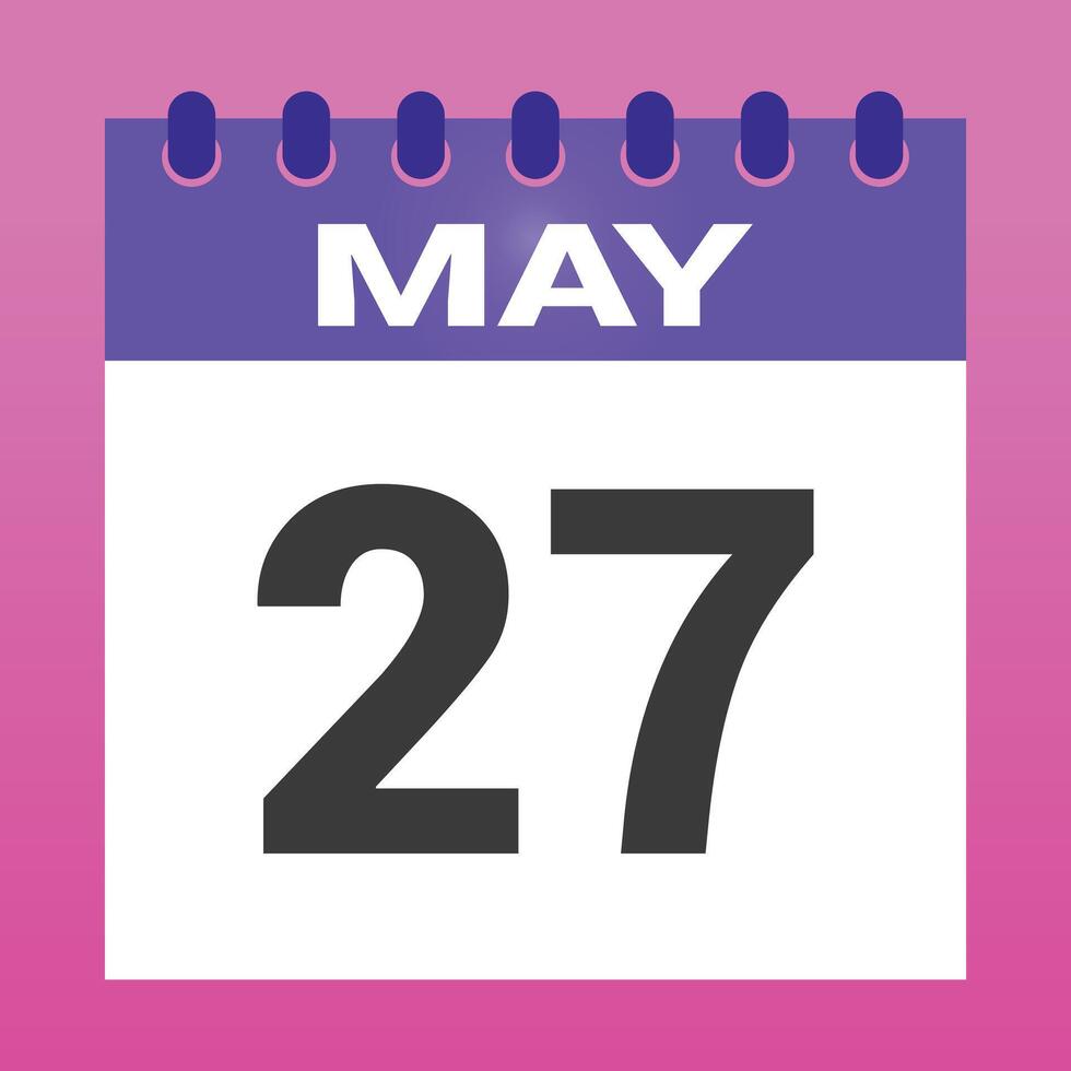 May twenty seventh date on a calendar page displays against a pink gradient background Pro Vector