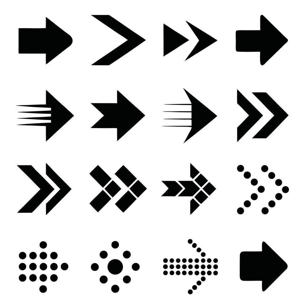 Stylish Collection of 16 Black Arrow Icons Modern Directional Graphic Symbols for Web Design and UI Pro Vector