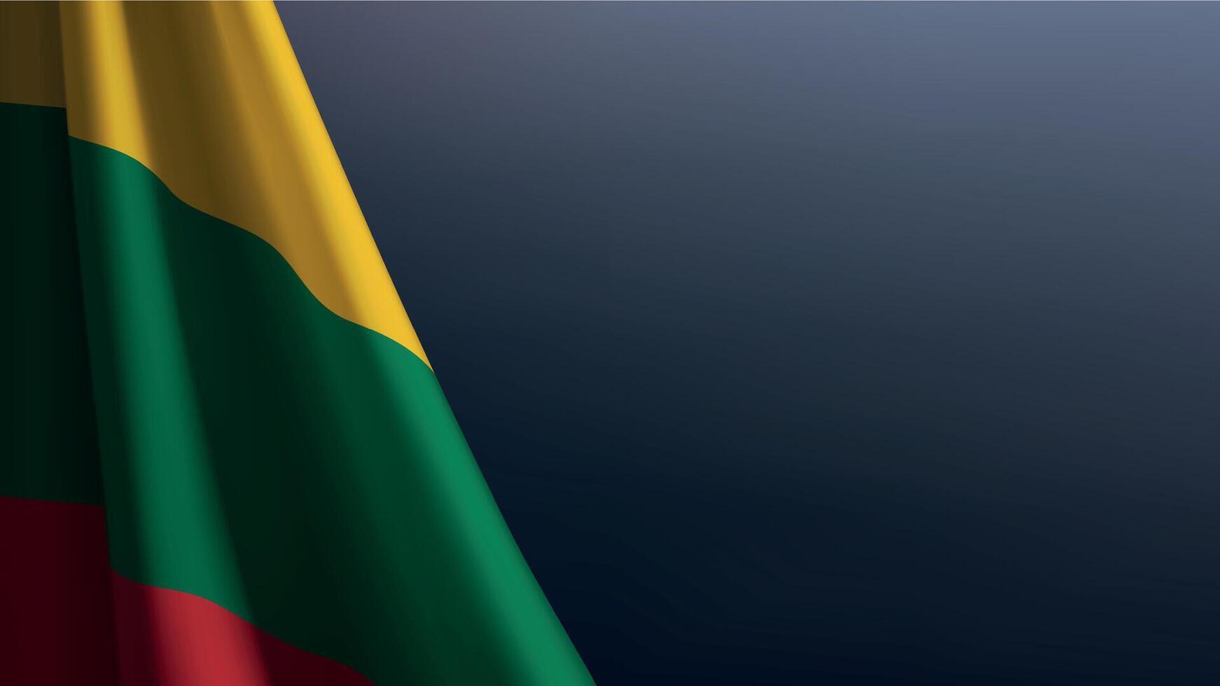 Lithuania flag with emblem on dark gradient background Pro Vector