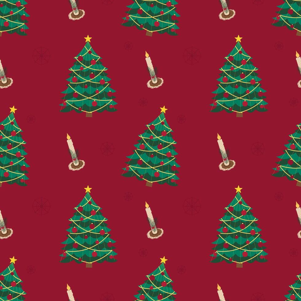 Festive Christmas Tree and Candle Pattern Design Pro Vector