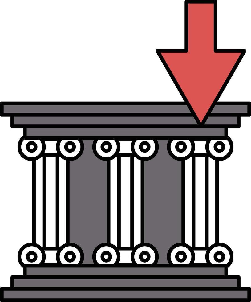 A white and black drawing of a column with a downward arrow pointing to it Pro Vector