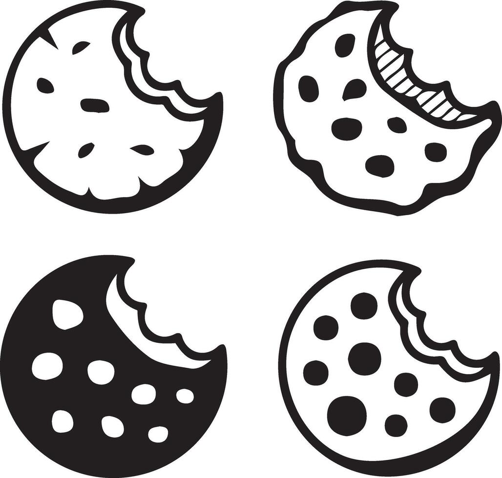 4 Cookie Silhouette Illustration with Bite Marks and Various Shapes Design Collection vector