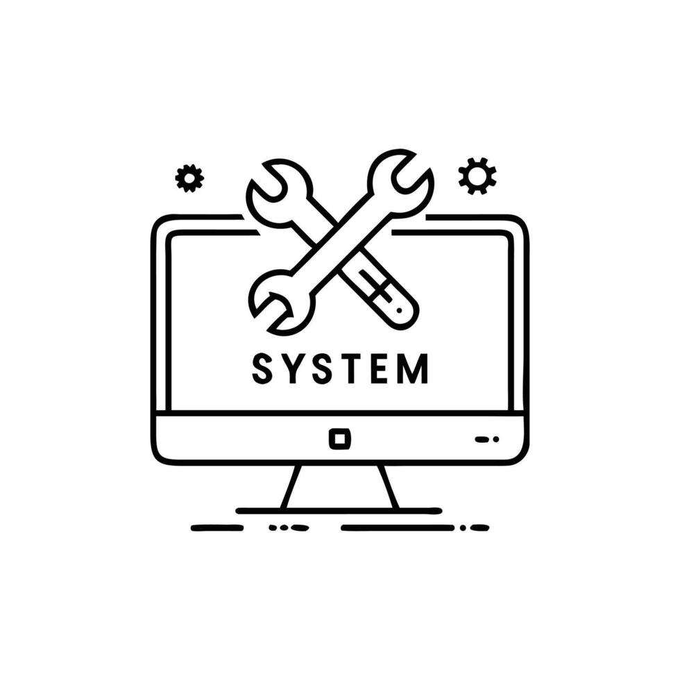 Line Icon Computer System, Crossed Wrenches, and Gears with Background Pro Vector