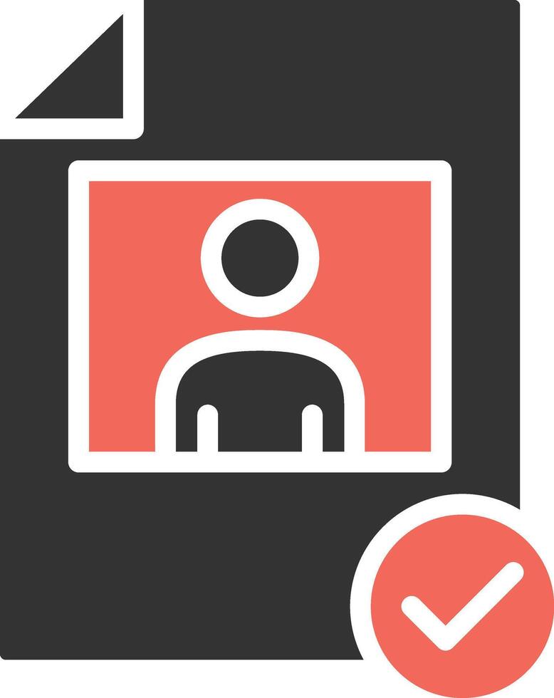 The symbol icon of a document containing a user profile or identity, accompanied by a verification mark that the information has been checked and deemed valid or accurate. Pro Vector
