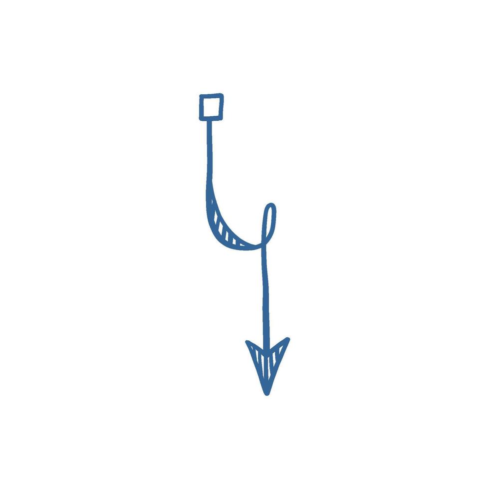 Hand-drawn arrow sketch as navigation symbol, freehand graphic pointer for direction and guidance blue cute design. Pro Vector
