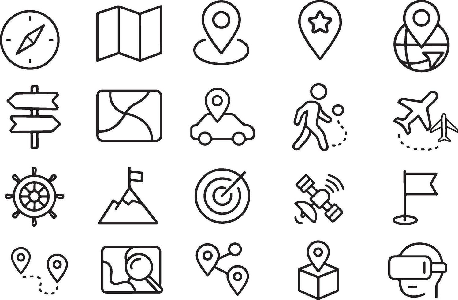 Navigation Line Icon Set Modern Outline art Icons for GPS, Compass, Maps, Routes, Travel, Direction, Location, and Navigation Apps Pro Vector