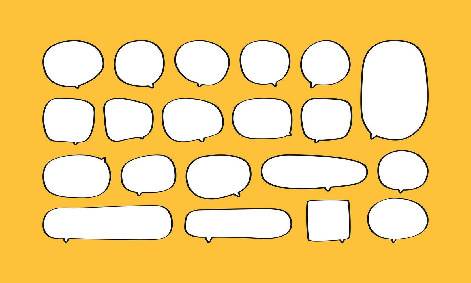 A collection of various blank hand-drawn speech bubbles and comic clouds on a yellow background. Perfect for adding text, dialogue, and thought bubbles to graphic designs, comics, and animated Pro Vector