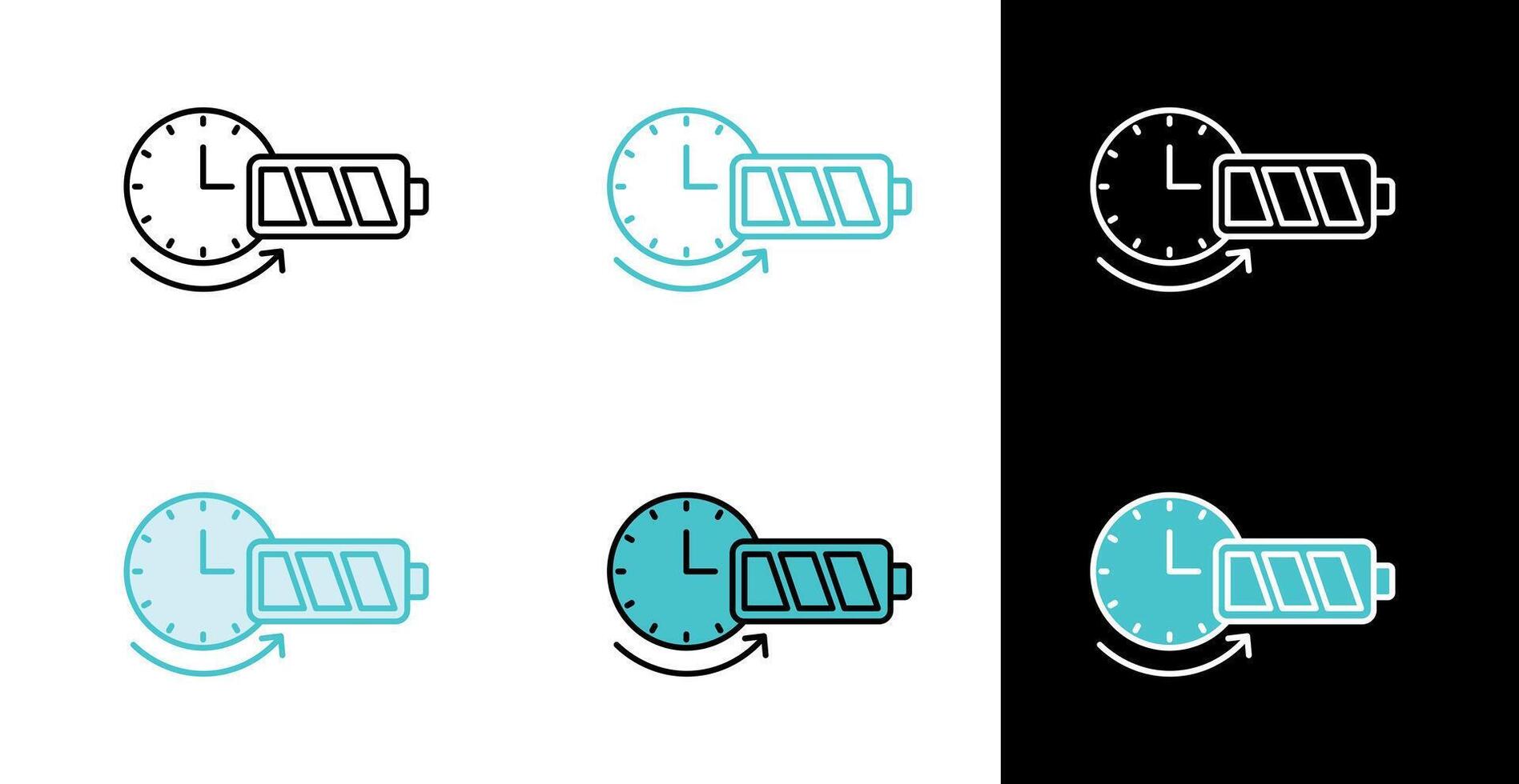 Battery with clock icon for charging time and power management in line and fill style Pro Vector