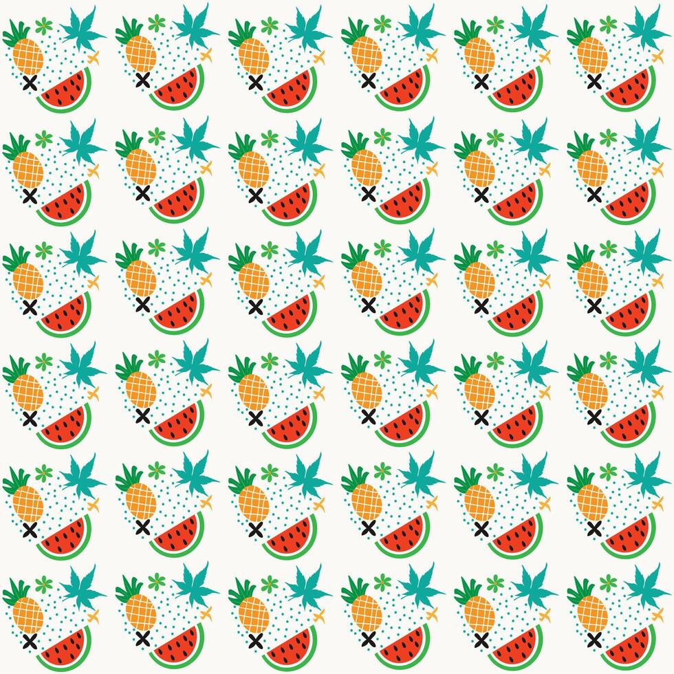 Beautiful seamless patterns with watermelon, pineapple, flowers, leaves, abstract elements for fabric, textile and all prints. Pro Vector