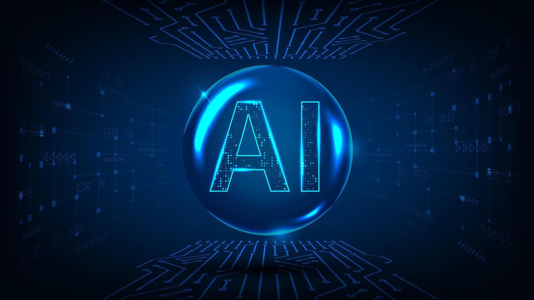 Technology artificial internet text on bubble digital tech with line circuit blue background Pro Vector
