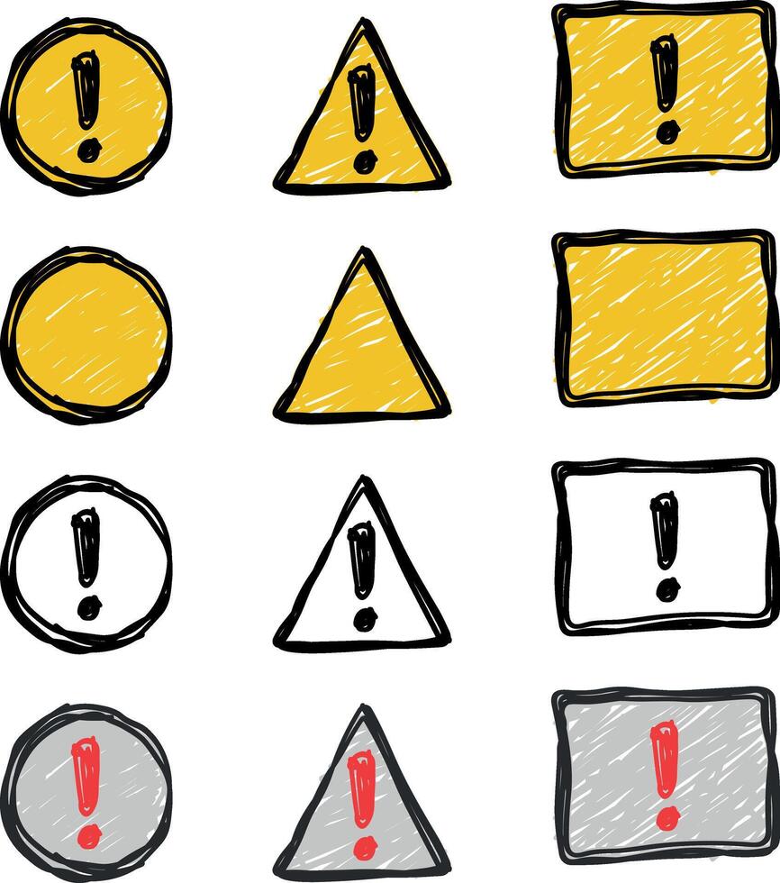 A set of warning signs with an exclamation mark and empty frames in a hand drawn style without background Pro Vector