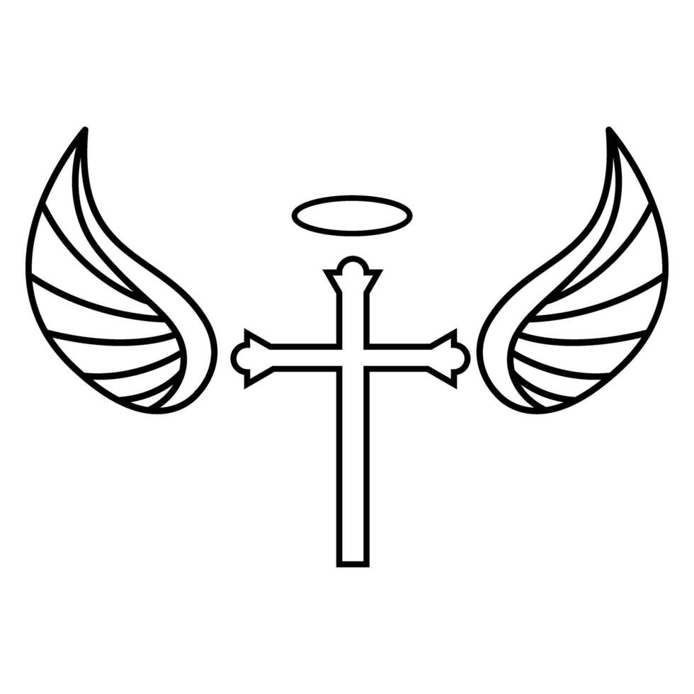 Cross with wings icon. Outline cross with wings icon for web design isolated on white background. Pro Vector
