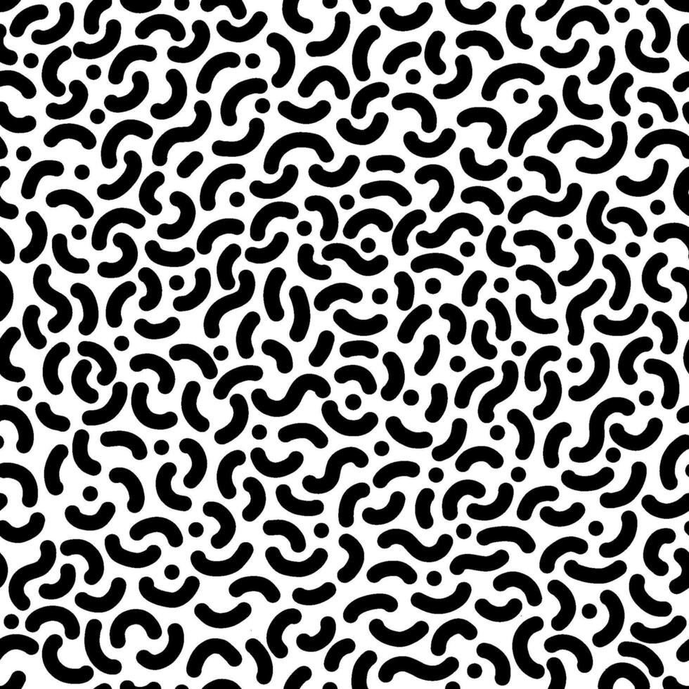 Black and white curved lines and dots seamless pattern. Line hand drawn black and white texture. Background for wrapping paper and fabric. Pro Vector