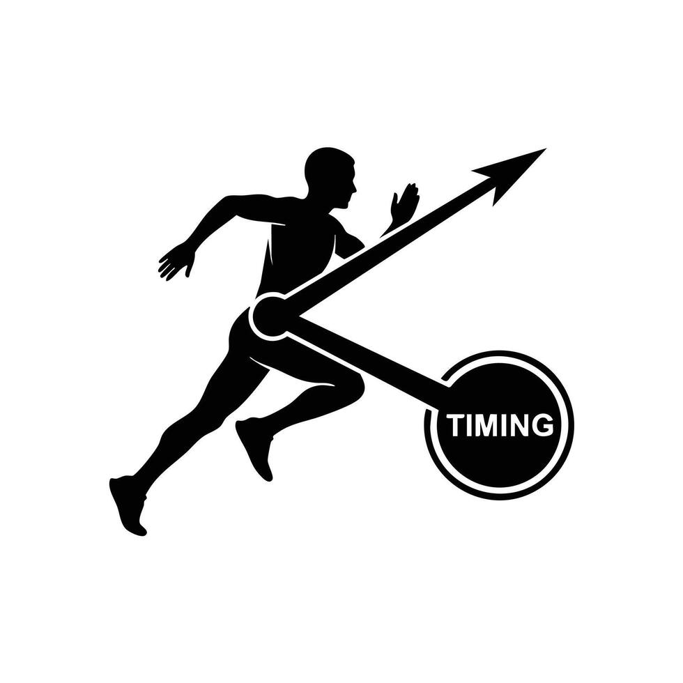 Dynamic representation of a runner in motion with a timing symbolizing speed and performance tracking. Pro Vector