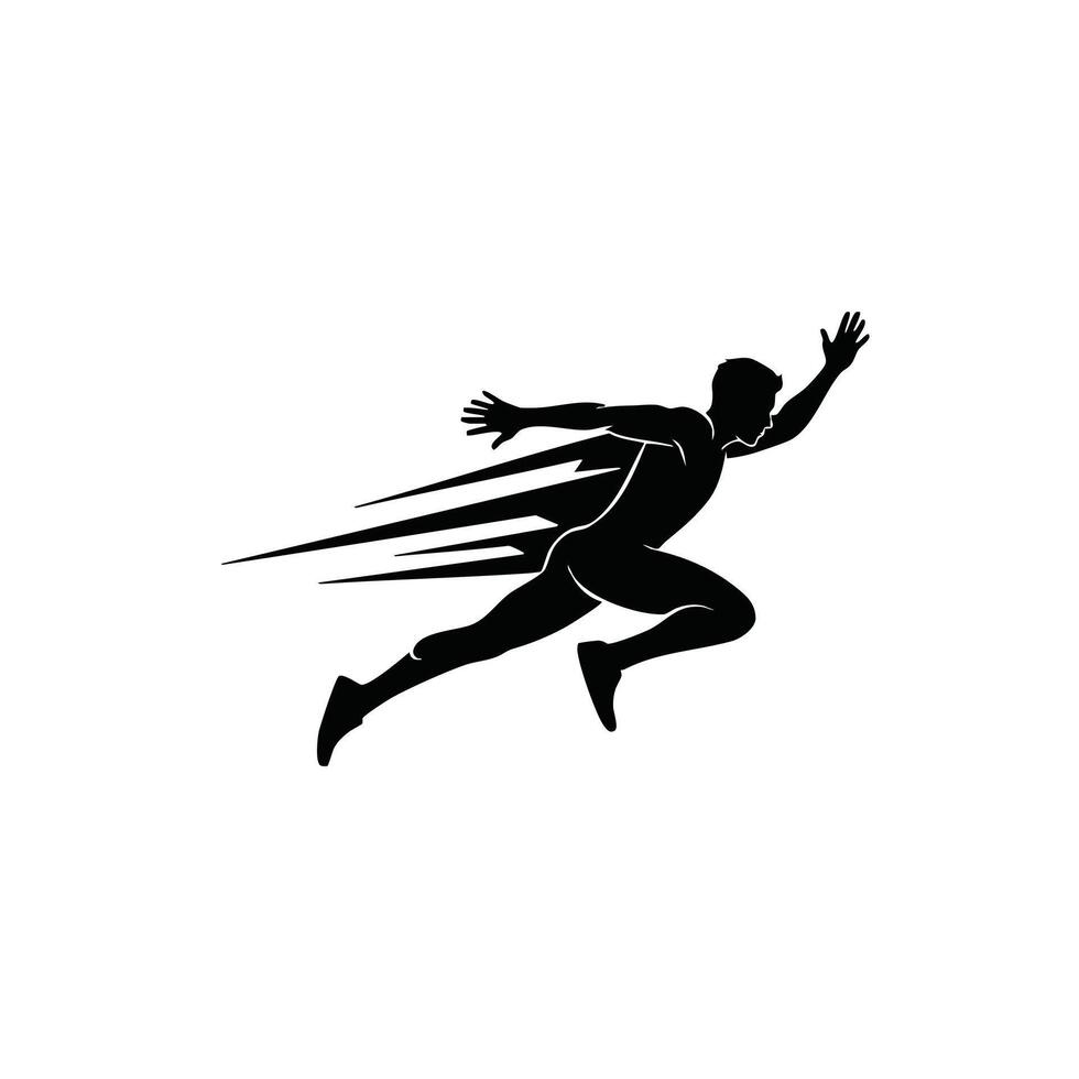 Dynamic silhouette of a runner with a cape, illustrating speed and motion in a minimalist design style. Pro Vector