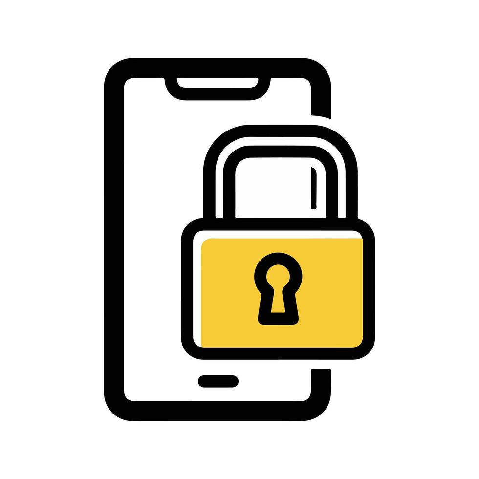 Smartphone security icon with a yellow padlock symbolizing mobile data protection, digital privacy, and device safety vector