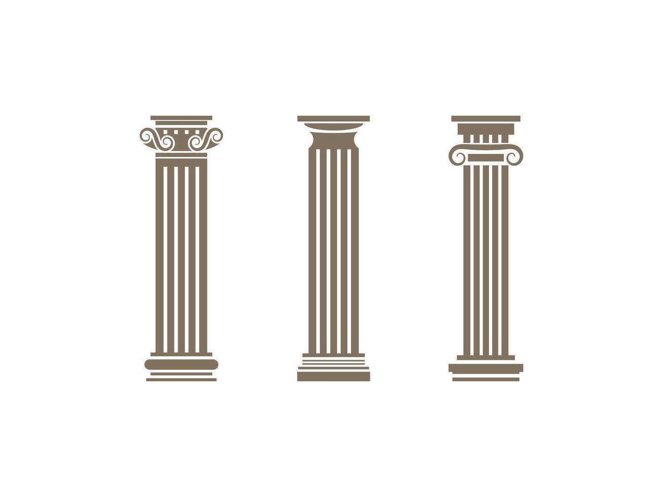 Roman column set, Greek pillar Ancient architecture, Greece Antique Doric, Ionic, Corinthian columns. Roman column set, Greek pillar, Ancient architecture Pro Vector