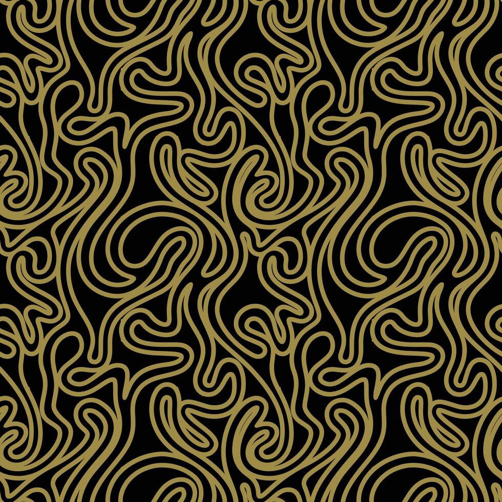 A swirling gold repeating line pattern on a black background, creating an intricate, abstract design with fluid movements. Pro Vector