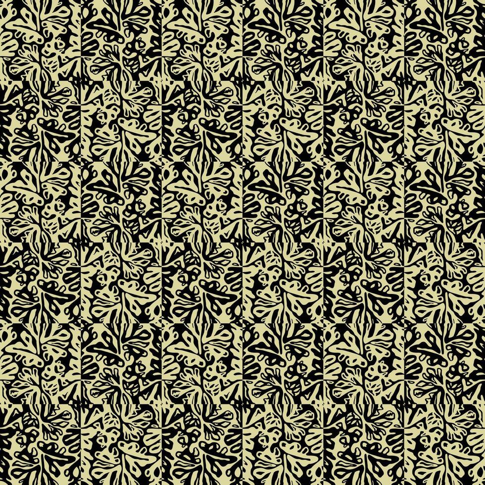 A repeating pattern of black abstract floral shapes on a light beige background, creating a vibrant, texture design. Pro Vector