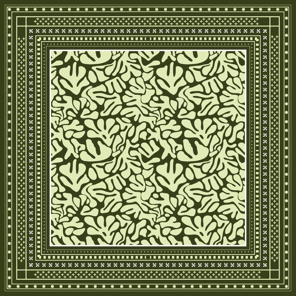 A stylized green leaf square shape scarf pattern with a decorative border, featuring alternating shades of green and a geometric design. Pro Vector