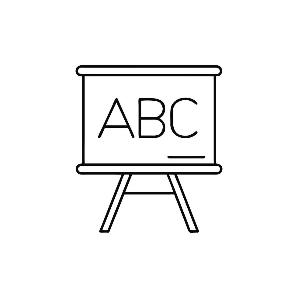Minimalist Whiteboard Icon Displaying ABC with Stand in White Background Pro Vector