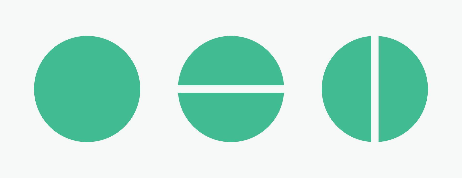 Set of two parts of circle. Pie chart with two same size sectors. Pro Vector