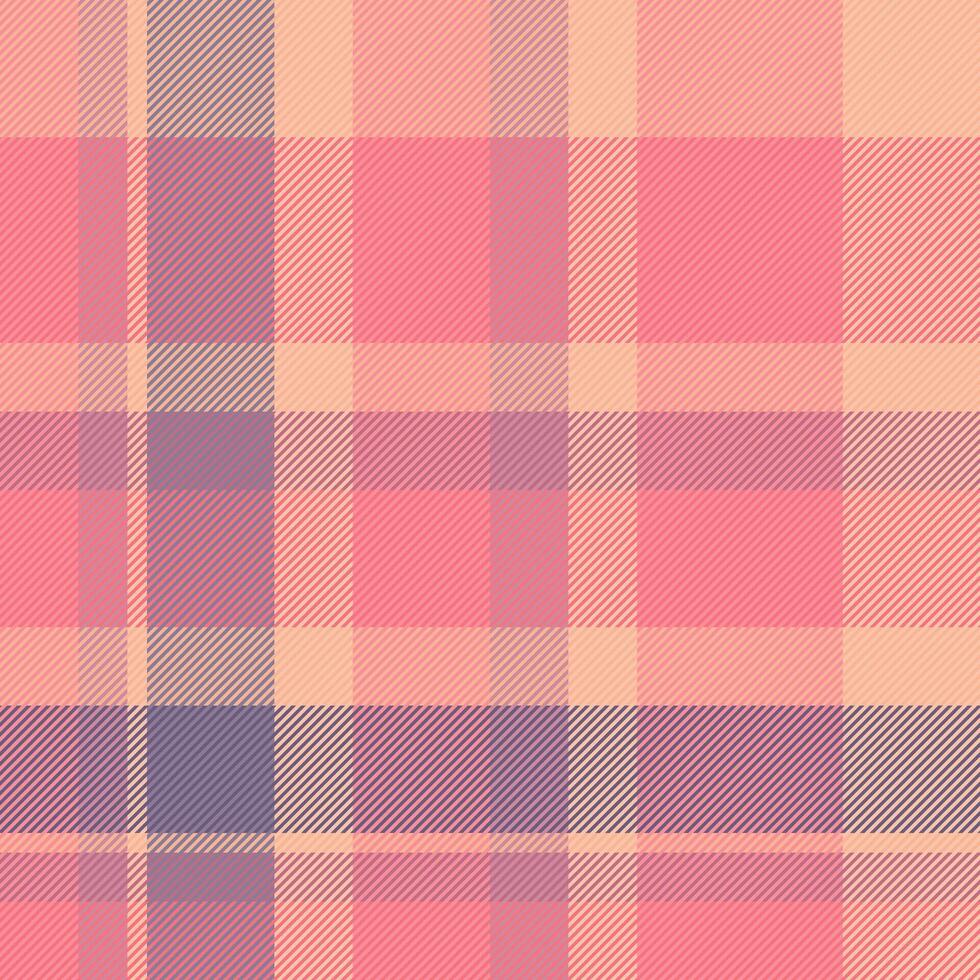Soft, pastel plaid pattern in pink, peach, mauve. Elegant texture ideal for backgrounds, textiles, or digital design. Evokes warmth and comfort. Versatile. Pro Vector