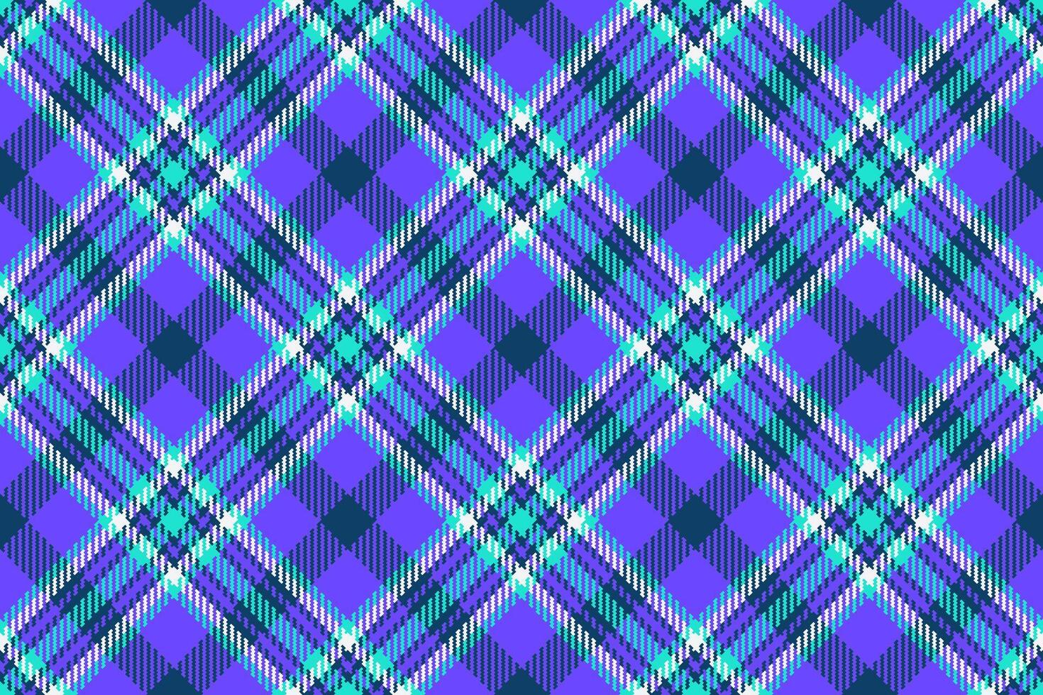 Vibrant plaid pattern with intersecting purple, blue, teal lines. A versatile backdrop for textiles, apparel, creative designs. Perfect for adding texture. Pro Vector