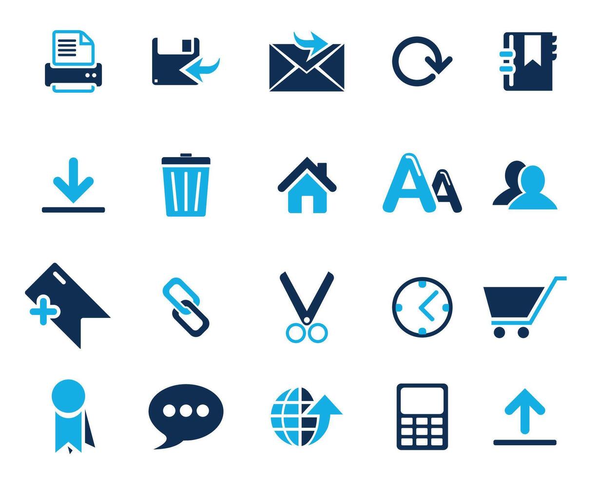 Light and Dark blue Web icons set vectors, web and communication icons for web computer and mobile Pro Vector