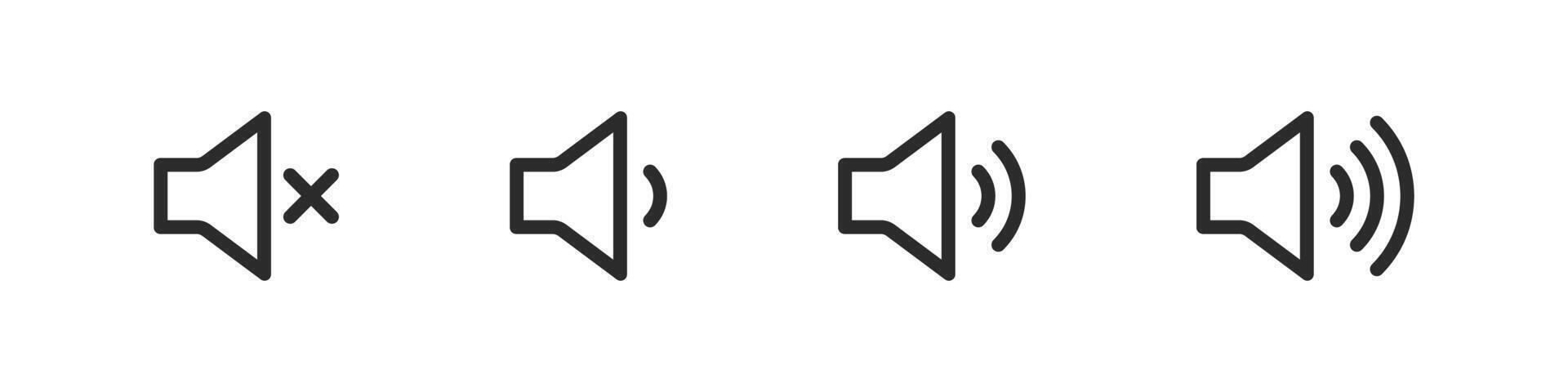 Audio volume icons showing mute, low, medium, and high sound levels. Useful for audio control, music apps, sound settings, and multimedia design. Pro Vector