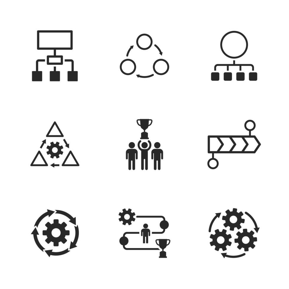 Set of business solid icons for planning teamwork and process management. Pro Vector