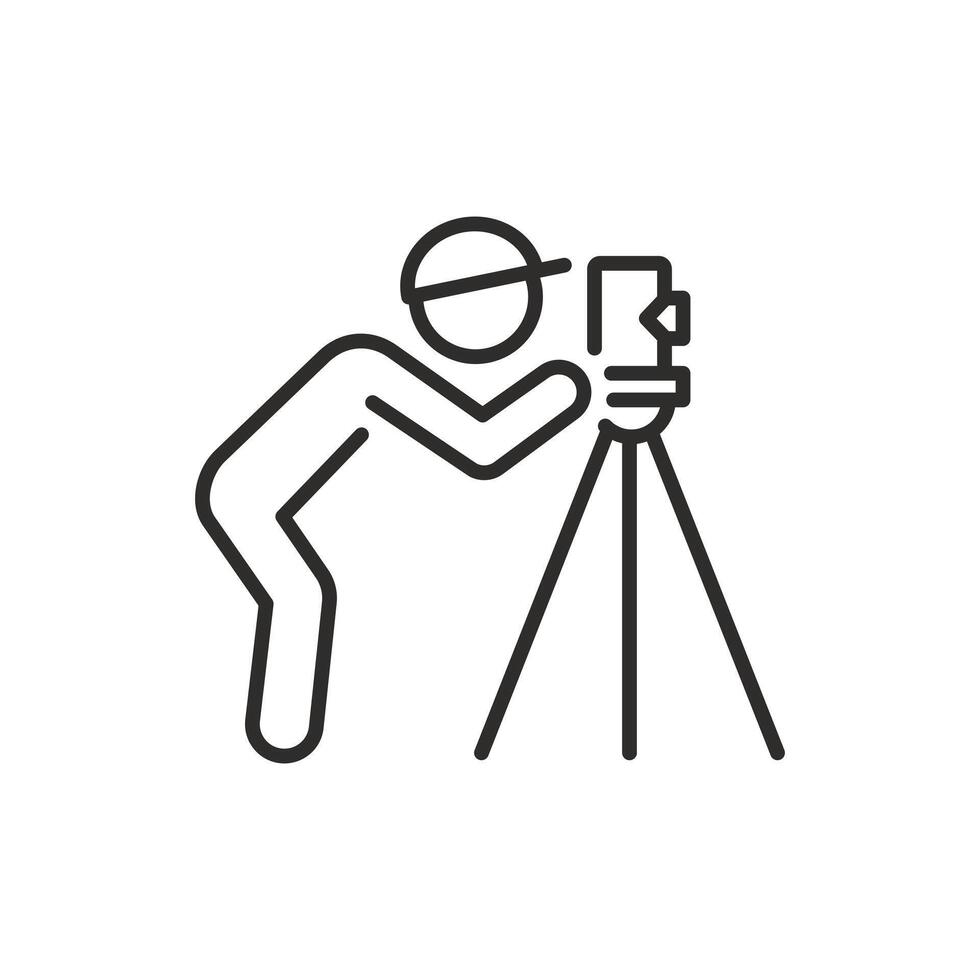 land surveyor icon, measure with alignment laser tripod, engineering survey specialist, geodesy work, thin line symbol Pro Vector