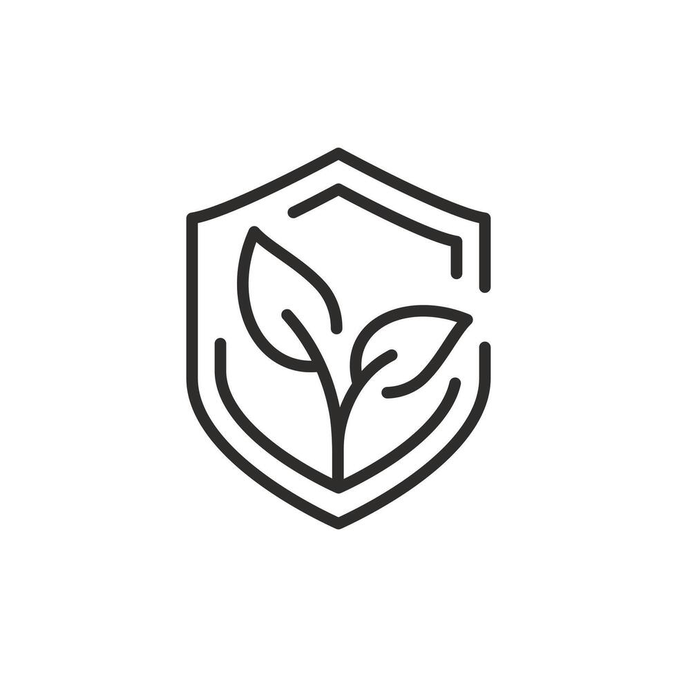 shield with leafs icon, save environment or ecology, bio protect, thin line symbol on white background Pro Vector