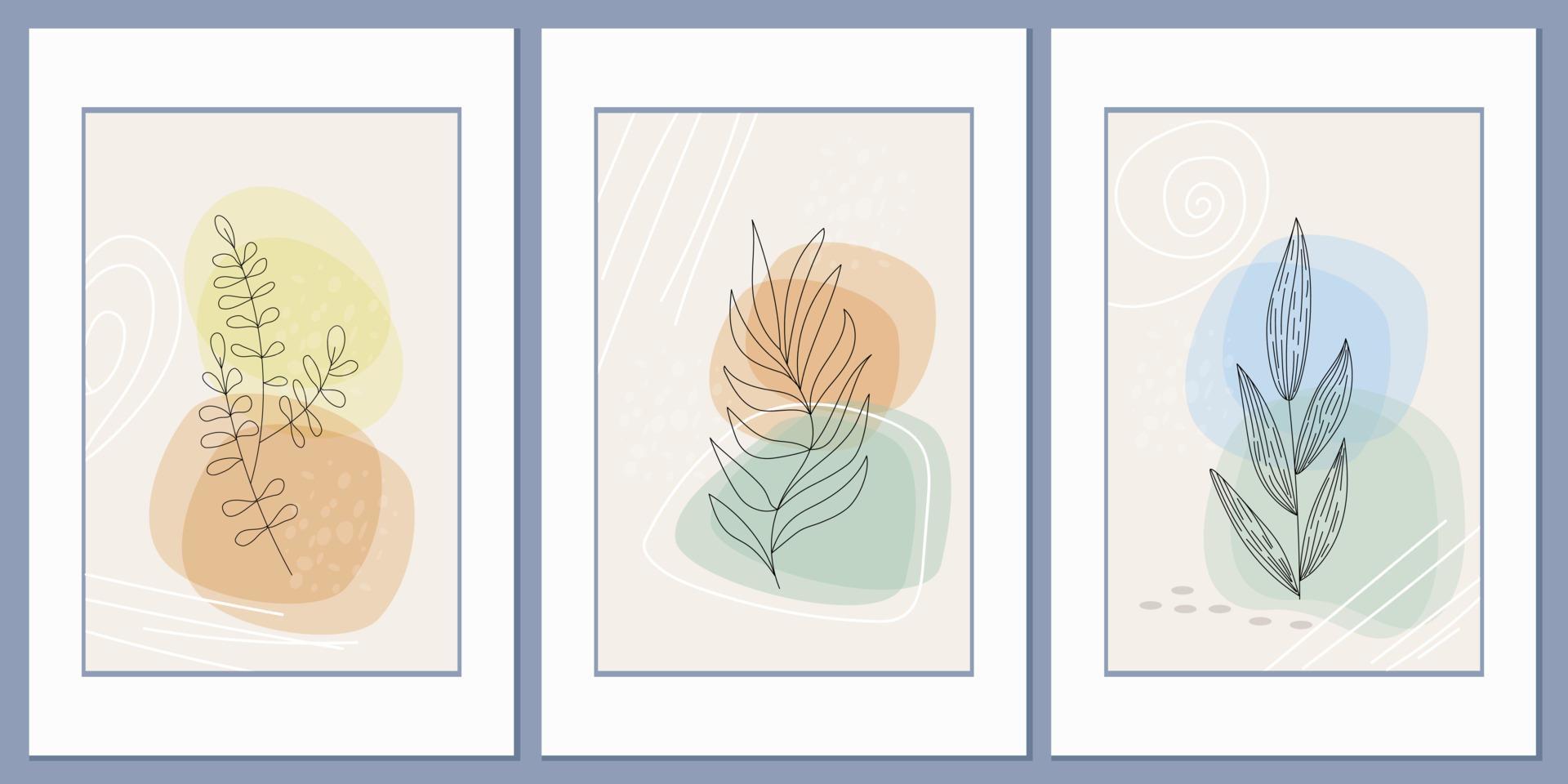 Linear drawing of a plant. Contour field grass on the background of abstract geometric shapes and lines. Pro Vector