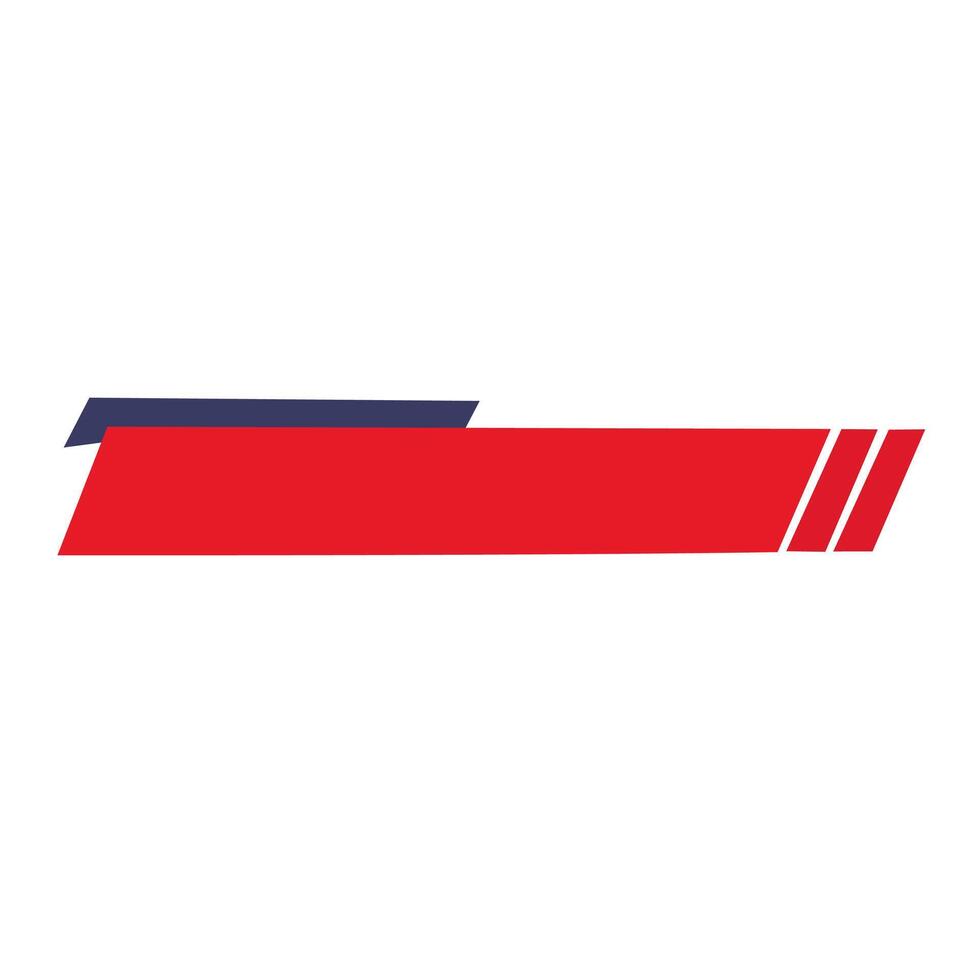 Dynamic, modern lower third or title bar in bold red with a navy accent. Slanted edges and three diagonal white lines on the right suggest speed, energy, and a sports theme. vector