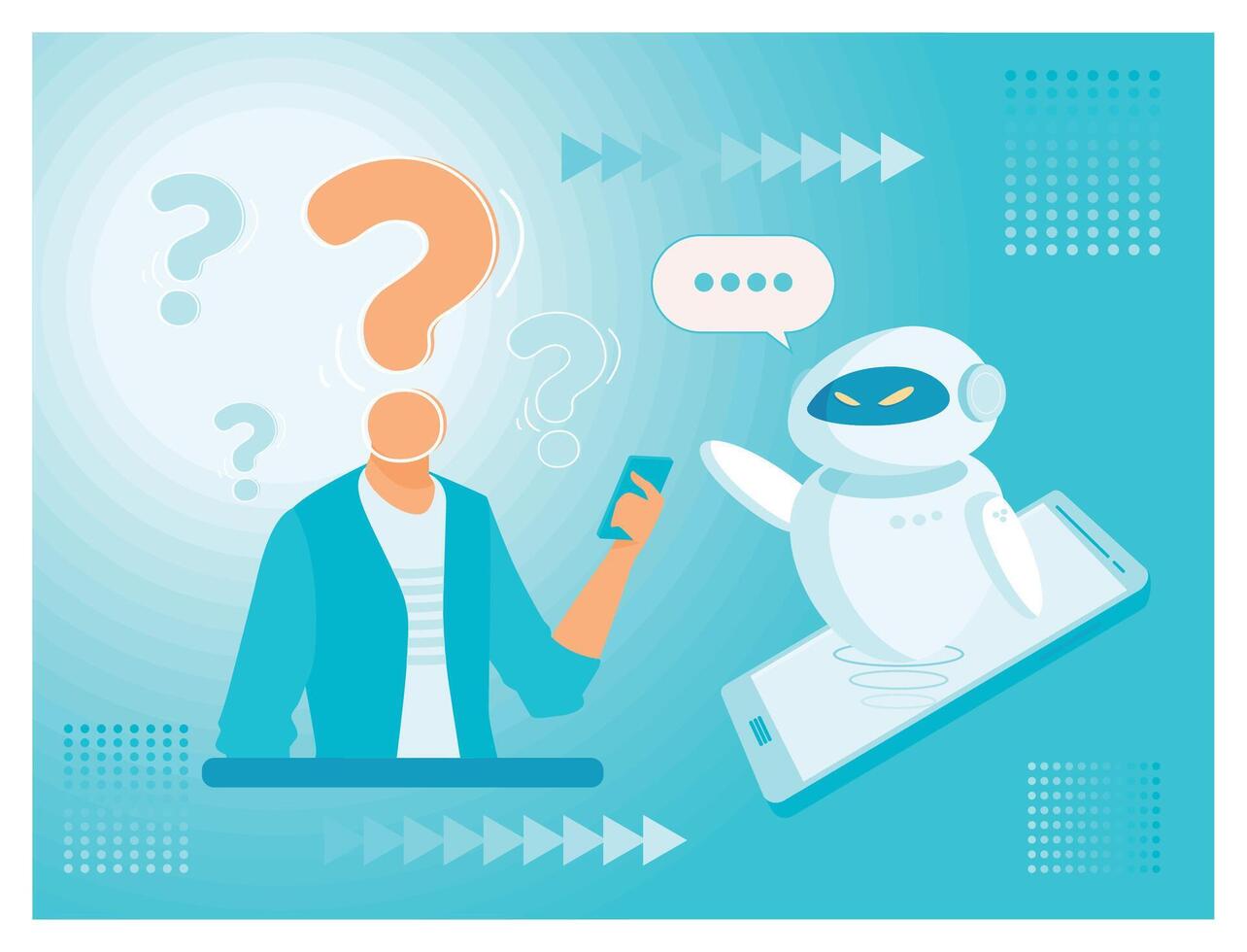 Generative artificial intelligence concept. Futuristic Robot Chats With Human On Smart phone. Pro Vector