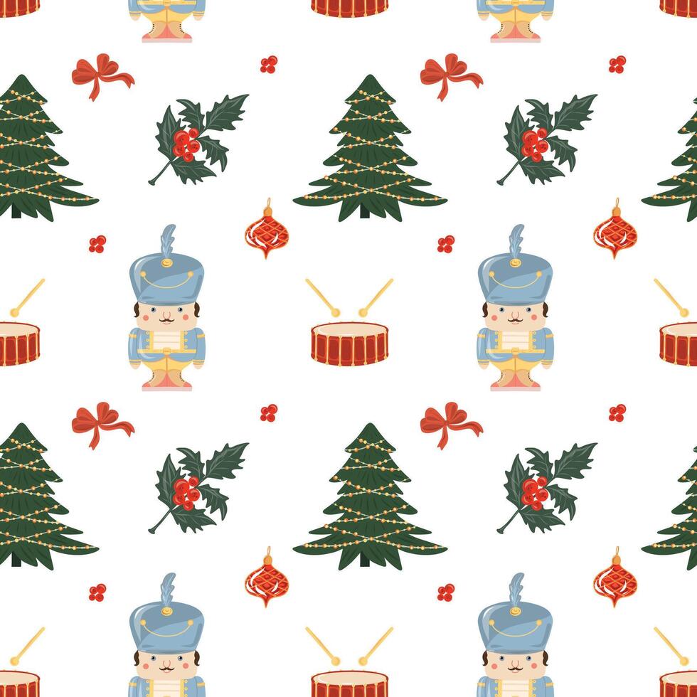 Christmas seamless pattern, Nutcracker and tree pattern, Holiday background Pro Vector