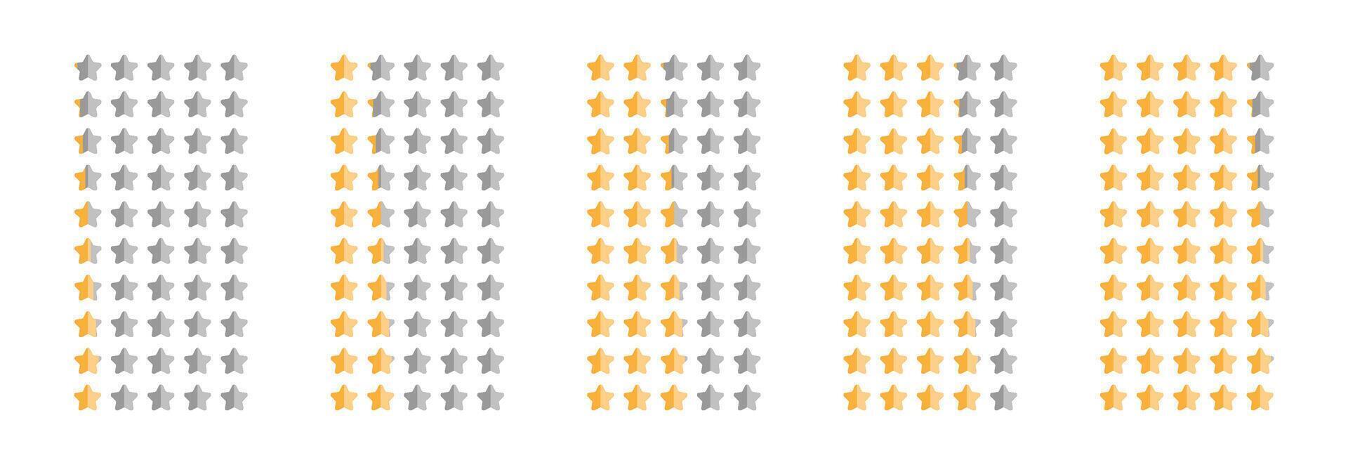 A illustration displays a star rating scale featuring five distinct levels, each represented by a combination of grey and yellow stars Pro Vector