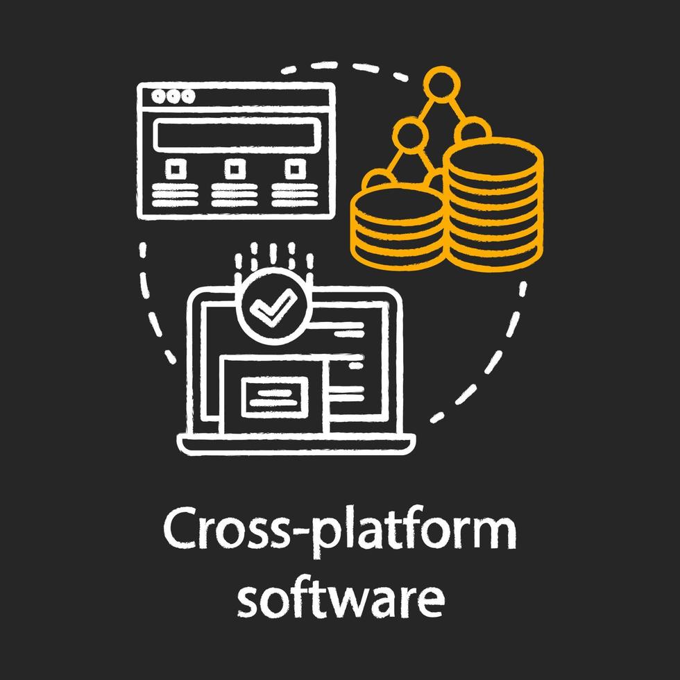 Cross platform software development chalk concept icon. Adaptive programming application idea thin line chalkboard illustration. Responsive app, internet technology. Vector isolated outline drawing Pro Vector