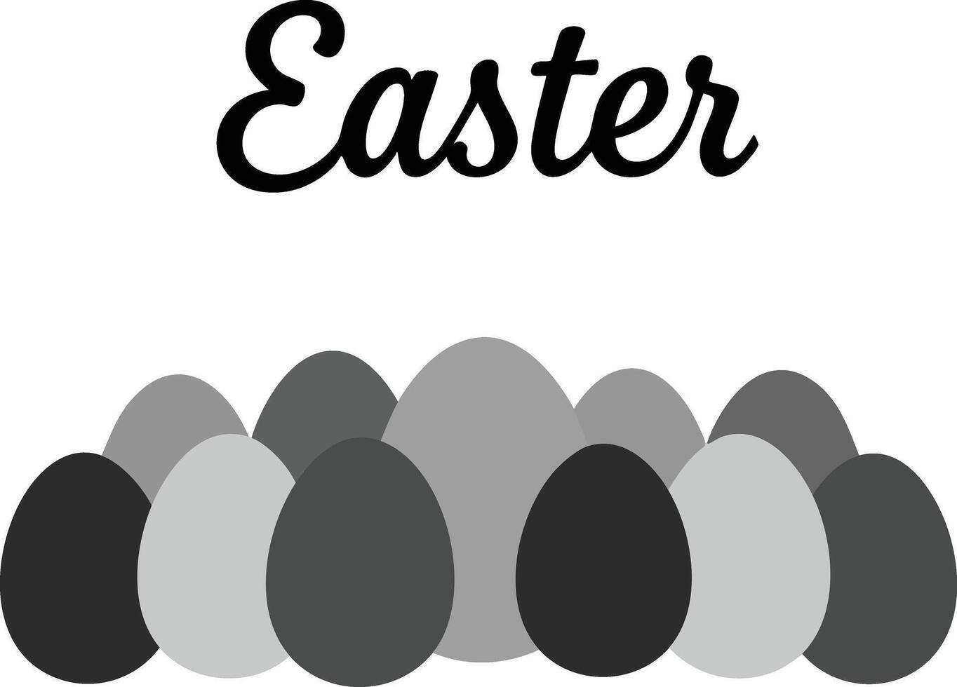 Easter holiday greeting with monochrome eggs and script text in simple design Pro Vector