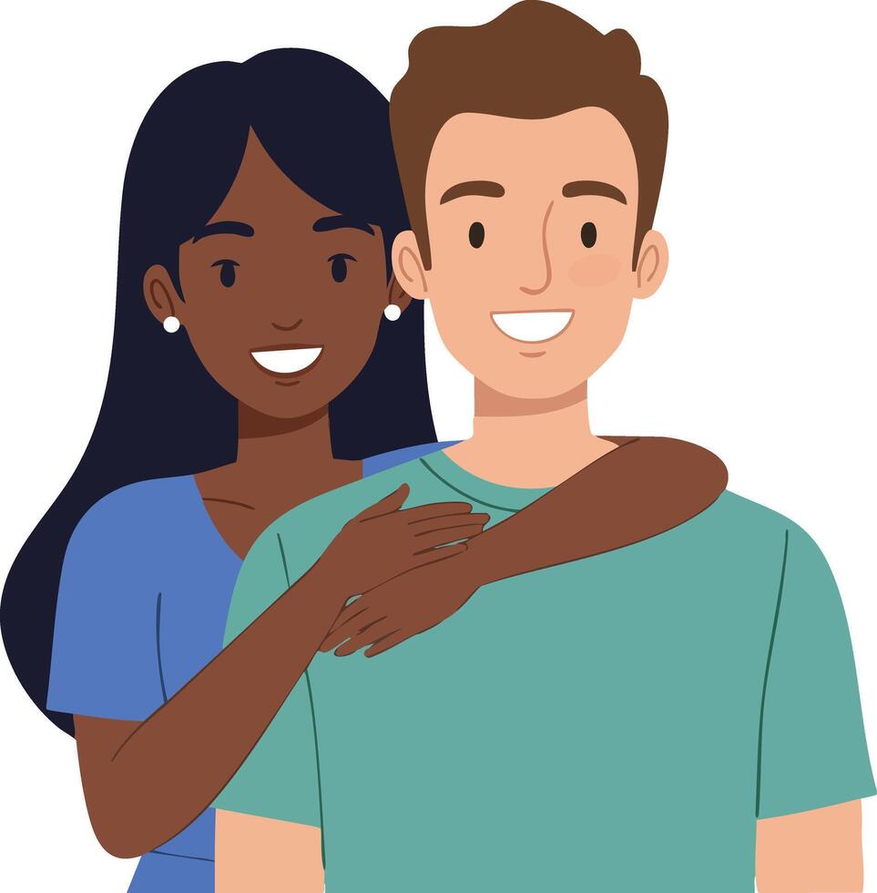 Couple hugging with smiling expressions showing affection and closeness in a friendly relationship illustration Pro Vector