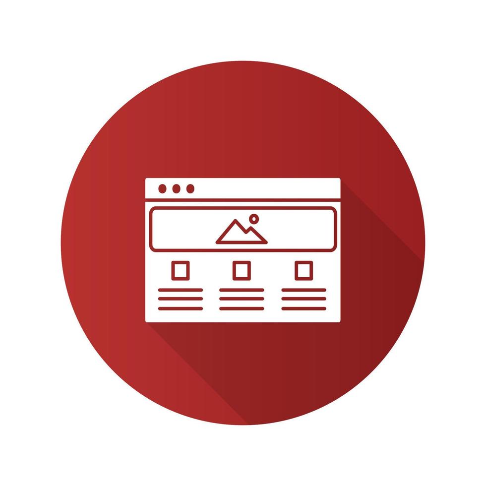 Web page template flat design long shadow glyph icon. Website. Web design and development. Vector silhouette illustration Pro Vector