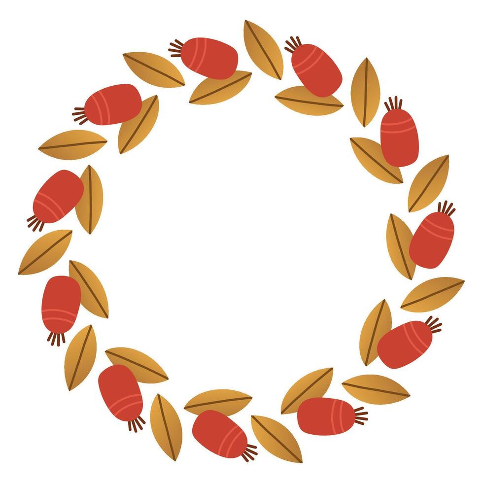 Fall autumn red berry circle frame. Round border made of fall berries. The berries have different shapes and are arranged in a circle. flat isolated on white background. Pro Vector