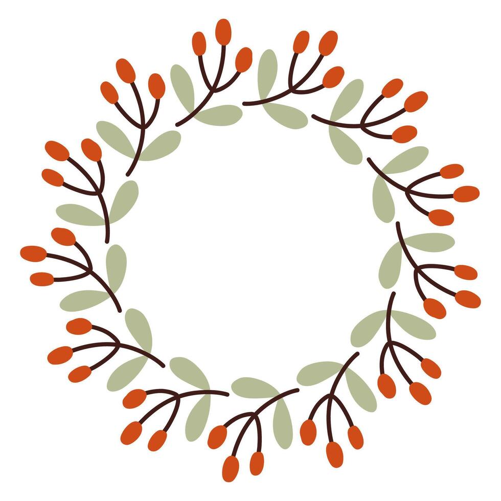 Autumn red and blue berry circle frame. Round border made of fall berries. The berries have different shapes and are arranged in a circle. flat isolated on white background Pro Vector