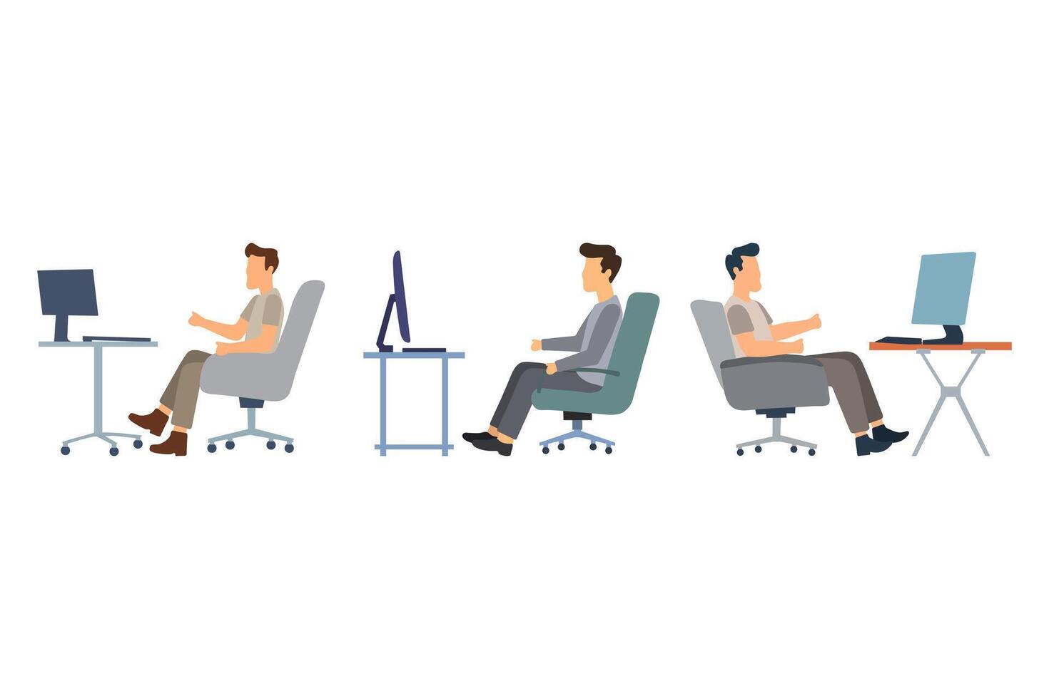 Man Working at Computer Desk Illustration Collection Set Pro Vector
