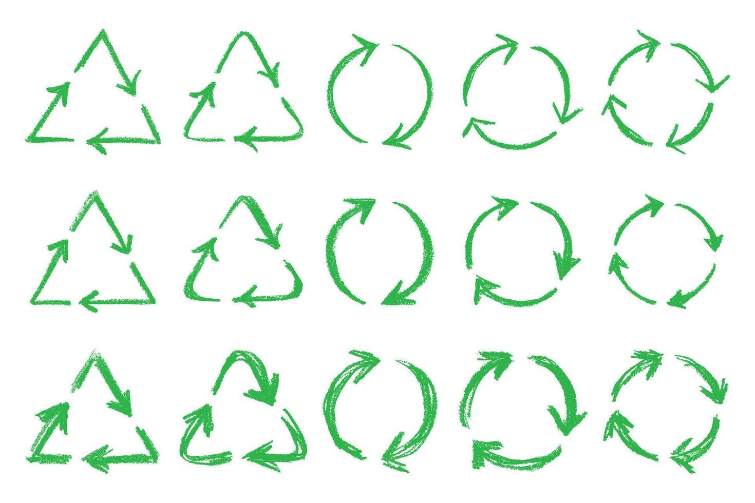 Set of hand drawn recycle arrow icon Recycling resources symbol Reuse of materials, zero waste, green environment, saving the planet concept rotation Pro Vector