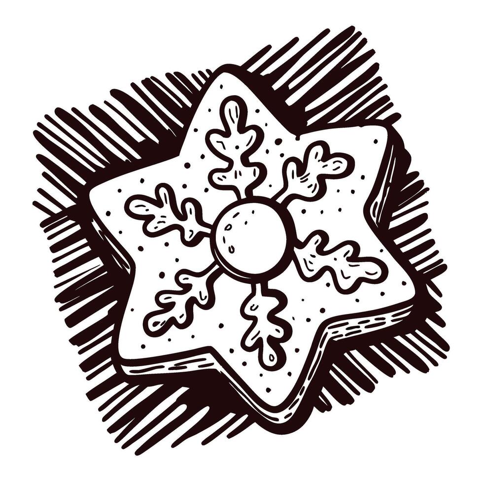 Hand drawn star shaped biscuit with intricate snowflake pattern and shading isolated on white background Pro Vector